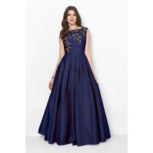 Embroidered Silk Blend Semi Stitched Flared/A-line Gown (Blue)