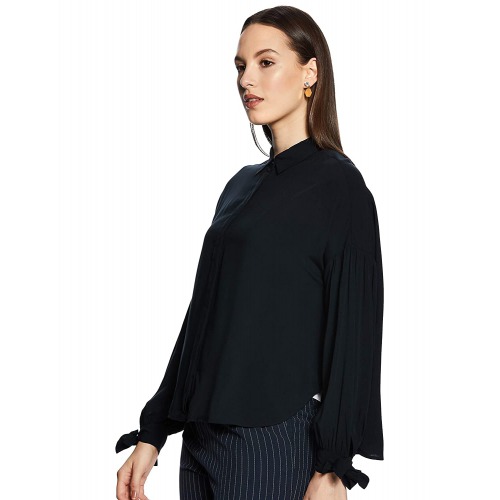 Styled shirt in black plan color. Perfect for your on-the-go life; this shirt makes outfitting easier then ever.